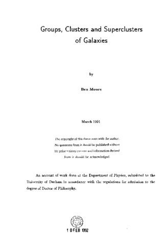 Galaxies are observed in a diverse range of associations. Understanding the dynamical, statistical and clustering properties of aggregations of galaxies forms the main body of this thesis. On the smallest scale, we use a model for the Local Group to study the formation of a typical galaxy system and to understand the mass distribution within the Local Group. Our model is a binary system excised from numerical simulation of a Universe dominated by cold dark matter which has similar radial velocity and separation as M31 and the Milky Way. We find that the timing argument provides a reliable method for placing a lower limit to the mass of the Local Group. The anisotropy parameter of the particle orbits within the dark halos of CDM are predicted to radially biased. To reconcile the mass of the Milky Way with the predictions from the timing argument and the mass of our model halo, the satellites of our Galaxy must be on circularly biased orbits. The asymptotic values of the rotation curves of the two halos match very closely those of M31 and the Milky Way, as the halos come closer together the curves become very distorted. A simple treatment of gas within our model extends the rotation curves into the central regions of the halos. In our model, M31 and the Milky Way collide 2.5 Gyrs from the present time, a fraction of the current crossing time. Intermediate scales are probed using a statistical analysis of groups of galaxies identified using well defined selection criteria from the CfA redshift survey. The grouping algorithm is optimised using artificial galaxy catalogues constructed from N-body simulations which have similar low order correlations to the original survey. We develop a method of estimating the total luminosity of groups of galaxies identified within magnitude limited redshift surveys and use it to calculate the luminosity function of galactic systems. This statistic measures the abundance of gravitationally bound structures, independent of the detailed arrangement of the luminous material within them. We find that this function has a smooth transition from single galajdes to rich clusters. The distribution of group velocity dispersions shows a discontinuity at the transition between groups and rich clusters. The correlation function of groups is found to depend on the mass range of the sample, luminous groups are more strongly correlated than faint groups. We compare these results with predictions from the CDM model and have extended to intermediate scales the previous success of the model on galactic and cluster scales. On large scales we have used an all sky redshift survey of galaxies detected by IRAS to investigate the topology of the Universe to a depth of 200h(^-1) Mpc. Qualitatively, the distribution of galaxies out to this distance appears similar to a Gaussian density field with a sponge-like topology. High and low density regions are topologically similar and surfaces of constant density are interconnected. Quantitatively, we have used the genus-threshold density relation of Hamilton et al. to measure the slope of the power spectrum over a range of length scales between l0 (^-1) Mpc and 50h(^-1) Mpc. To constrain the slope of the power spectrum we used artificial "galaxy" catalogues constructed from N-body simulations and a variety of Monte-Carlo and bootstrap techniques. Our topological analysis is consistent with a spectrum of power-law form with n ~ -1 (in δk(^2) x k(^n)) over the range of scales considered. Values of n < -1.8 and n > 0 are strongly ruled out by our data. The inferred power spectrum of the distribution of IRAS galaxies is similar to the predicted mass spectrum in the standard cold dark matter model on scales <15 h(^-1) Mpc, but falls off less steeply on larger scales. This discrepancy is significant at over 2σ and implies that structure identified by IRAS galaxies is coherent over scales larger than expected from the CDM model.