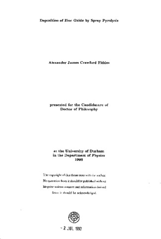 The objective of this work was to grow doped ZnO by spray pyrolysis at low temperature. This was achieved via the initial objective of growing ZnO in unhoped-for over a wide range of conditions, in order to understand the growth behaviour of ZnO from Zn(acac)2.H(_2)O and to establish the optimum growth procedure at high and low temperature. Various techniques were employed to characterize the films and thus determine the optimum growth conditions (i.e measurement of film thickness, resistivity, Hall coefficient. X-ray diffraction and reflection electron diffraction to name but a few).With the growth of undoped films it was found that the film properties varied with temperature and moisture content and that the optimum conditions for low temperature growth in a dry ambient were at 200ºC and for high temperature growth in a wet ambient at 300ºC.An analysis of the growth behaviour of ZnO was carried out and it was suggested that there were at least four mechanisms leading to the decomposition of the precursor used (Zn(acac)2.H(_2)O). They were decomposition by miramolecular, mtermolecular, thermolysis and hydrothermolysis processes. A kinetic analysis demonstrated that evaporation was the dominant process which reduced the efficiency of utilization of Zn(acac)(_2).H(_2)O. The growth of doped ZnO in glass and plastic at low temperature using InChl(_3) as a dopant yielded conducting films. The results also showed that films obtained using solutions with low concentrations of Zn(acac)(_2).H(_2)O and high concentrations of InCl(_3) were even more conducting ( p ≈ 10(^-5)Ωm). The morphology of film growth was dominated by the presence of dopant. High temperature growth of doped ZnO in a wet ambient using InCl(_3) also yielded conducting films and these were compared with indium, aluminium and gallium doped films where alternative dopant matericds such as In(acac)(_3), Al(OPr)(_3), AICL(_3) and Ga(acac)(_3) at a variety of different solution concentrations had been used. This was undertaken to discover whether these materials functioned as well as InCl(_3) in producing low resistivity ZnO. Doped films were characterised using the same techniques as before. Elemental analysis, photoluminescence and optical measurements were also carried out on these films. The main conclusions were that : (1) The growth rate of ZnO from Zn(acac)2 .H2O is heavily influenced by the growth temperature and other conditions. (2) The film resistivity was influenced by growth temperature. A minimum in the film resistivity was observed when a growth temperature of 300ºC was used. (3) Undoped ZnO films grown below 200ºC had a different preferred order to those grown above 200ºC.(4) The best high temperature conditions for the deposition of undoped conducting adherent ZnO lay in the region of 276 - 306ºC. (5) The best low temperature conditions for the growth of undoped conducting ZnO were in the region of 200ºC. (6) The low temperature growth (175-200ºC) of doped ZnO produced films with resistivities of the order of l-5xl0(^-5)Ωm and a visible transmittance of 80%. This compares favourably with ZnO:Al and SnO(_2) which have also been grown at low temperature.