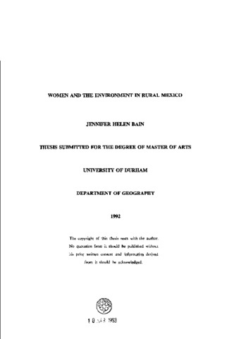 Rural women in Mexico live in deteriorating environmental conditions. Do they care? Are they more interested than men in helping to stop this degradation? What knowledge of the environment do rural Mexican women have? Section One analyses some Western views: the eco-feminist movement which sees women as equivalent to nature and both as subordinates of men, the Western historical and anthropological literature on women and nature and selected writers who see women as saviours of the Third World. In Section Two it is demonstrated that it is difficult to know if Mexican women care about the environment or even what they know, because there is little published information. A partial answer may be inferred from what is known about their work. Rural Mexican women's work is the best proof of their environmental knowledge; their roles and work are examined and the causes of their absence from the literature are discussed. The literature review was supplemented by field work in four communities of south-eastern Mexico. This established that these women vary in their approach to natural resources, and that this approach is much influenced by their culture and by themselves as individuals. Some have very substantial knowledge. The fieldwork supported the view that women's relationship with the environment is highly specific by place, time, culture, class and other factors, but there is still some continuity in attitudes to the environment among women, perhaps in their role as "carers".