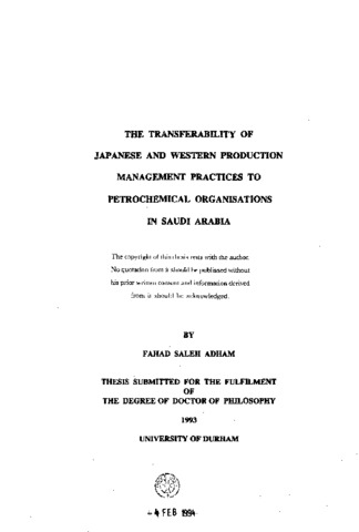 The transferability of Japanese and western production management practices to petrochemical organisations in Saudi Arabia