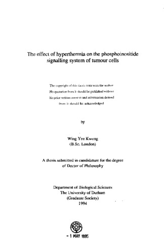 The effect of hyperthermia on the phosphoinositide signalling system of tumour cells