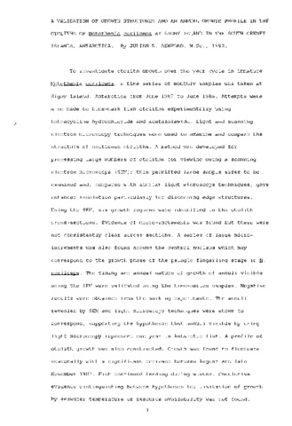 A validation of growth structures and an annual growth profile in the Otoliths of Notothenia Coriiceps at signy island in the South Orkney Islands, Antarctica.