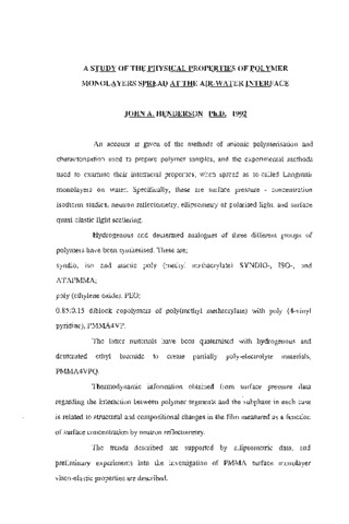 An account is given of the methods of anionic polymerisation and characterisation used to prepare polymer samples, and the experimental methods used to examine their interfacial properties, when spread as so-called Langmuir monolayers on water. Specifically, these, are surface pressure - concentration isotherm studies, neutron reflectometry, ellipsometry of polarised light, and surface quasi-elastic light scattering. Hydrogenous and deuterated analogues of three different groups of polymers have been synthesised. These are ;syndio, iso and atactic poly (methyl methaciylate) SYNDIO-, ISO-, and ATAPMMA; poly (ethylene oxide), PEO;0.85:0.15 diblock copolymers of poly(methyl methacrylate) with poly (4-vinyl pyridine), PMMA4VP.The latter materials have been quaternised with hydrogenous and deuterated ethyl bromide to create partially poly-electrolyte materials, PMMA4VPQ. Thermodynamic information obtained from surface pressure data regarding the interaction between polymer segments and the subphase in each case is related to structural and compositional changes in the film measured as a function of surface concentration by neutron reflectometry. The trends described are supported by ellipsometric data, and preliminary experiments into the investigation of PMMA surface monolayer visco-elastic properties are described.