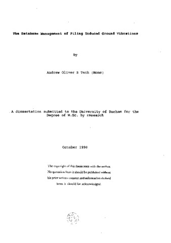 The storing of ground vibration signals produced by pile driving have been stored in a database on a Nimbus personnel computer. The signals were recorded on a purpose built data logger in the form of time history traces, analysed to calculate the maximum values and then these values transferred. This report covers the design of the transfer systems and the database itself, the manner in which the transfers were effected and a description of the support software produced. Data acquisition is also covered to provide an insight into why certain database design features were included. An expert shell system has also been designed, allowing predictive estimations of ground vibration levels to be achieved. Comparisons between the two systems suggest a good level of compatibility.