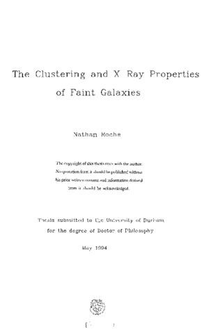 The clustering properties of faint (23 ≤ B ≤ 27) galaxies were investigated, with the aim of obtaining information about their redshift distribution, N(z), and therefore about the processes of galaxy evolution causing the steep rise in the galaxy number counts at B > 23. We calculated the angular correlation function, w(θ), for galaxies detected on a CCD survey reaching a blue magnitude of B(_eed) = 25.0 and a red magnitude of R(_eed) = 23.5, and on a smaller area reaching a very faint limit of B(_eed) = 27.0. The w(θ) amplitude of galaxies was found to decrease much more steeply between magnitude limits of B(_eed) = 23 and B(_eed) = 25 than predicted by models in which galaxy clustering is stable in proper co-ordinates and the galaxy redshift distribution possesses a no-evolution form. At a B = 24.5 limit the w(θ) amplitude was found to be only ~ (^1)(_4) that expected from a non-evolving model, enabling us to reject such a model at the 4σ level. The red-limited sample, R(_eed) = 23.5, also gave a w(θ) amplitude lower than the non-evolving prediction, although the difference was less significant (~ 2σ). A pure luminosity evolution model, which accounts for the excess in the galaxy number counts by enabling galaxies undergoing rapid star-formation at 1 ≤ z ≤ 4 to become visible at B > 23.5, gave a good fit to the w (θ) results without requiring any departure from stable clustering. The B(_eed) ≤ 24.5 galaxies with redder (B - R ≥ 1.5) colours gave a significantly higher w(θ) amplitude than the bluer galaxies at the same limit, consistent with a stable clustering model with no luminosity evolution. As these red galaxies would lie at z < 1, within an approximately non-evolving N(z), this result suggests that galaxy clustering is indeed stable out to at least z ~ 0.5. The low uj{9) amplitude of the B(_eed) ≤ 24.5 sample was found to be associated only with the bluer galaxies, supporting the PLE model interpretation of the drop in w(6) amplitude at B > 23.5 as being caused by the appearance of blue star-forming galaxies at high redshifts. If all the blue galaxies seen at B ~ 24.5 are instead at z < 1, they must belong to a separate population of dwarf starburst galaxies, which must be intrinsically clustered extremely weakly compared to normal galaxies. The combination of our w(θ) results at B(_eed) = 25.0 and B(_eed) = 27.0 limits with those obtained by Efstathiou et al. (1991) at B = 26 gave some indication that the steep drop in w(θ) amplitude at 23 ≤ B ≤ 25 levels out at 25 ≤ B ≤ 27. This would be expected if galaxies with L* luminosities are seen out to some maximum redshift at B ~ 25, so that N(z) becomes no more extended at fainter magnitudes. The amplitude of w(θ) at this limit would depend only on the value of the maximum redshift, on q(_0), and on the rate of evolution of clustering. The observed amplitude of w(θ) ~ 4 x 10(^-4)(deg)(^-0.8) would be consistent with 3 ≤ Z(_maz) ≤ 4, stable clustering and any value of Ω from 0 to 1. If galaxies are seen out to their maximum redshifts at B ~ 25, the gradient of the differential galaxy number counts at even fainter magnitudes would follow the faint end slope of the galaxy luminosity function. The galaxy number counts from our deep CCD survey are much higher at B > 24.5 than the predictions of q(_0) = 0.5 PLE models, and appear to rise more steeply at 25 ≤ B ≤ 27.5, with (^d(logN))(_dm) ~ 0.3, than even our q(_0) = 0.05 PLE model would predict. The observed number count gradient at B > 25, in combination with the levelling out of the w(θ) scaling, would then suggest that the luminosity function steepens to a ~ -1.75 at high redshifts, in addition to undergoing the strong brightening of the L* luminosity predicted by PLE models. We also investigated the X-ray properties of faint (18 ≤ B ≤ 23) galaxies, by cross- correlating their positions with those of X-ray sources (without identifications as either QSOs or stars) detected on deep ROSAT images. The results indicated that ~ 1% of all B ≤ 21 galaxies were detected above a 4σ threshold on the ROSAT X-ray images, with the cross-correlation between sources and galaxies being of 3σ significance. As the detected galaxies would possess L(_X)/L(_B) ratios higher than those typical of local galaxies by factors of ~ 100, these results suggest a wide dispersion of σ ~ 0.8 in the distribution of log (L(_X)/L(_B)) for galaxies. Spectroscopic investigation of the galaxies identified as probable X-ray sources indicated that they included both star-forming and early-type galaxies, with a mean redshift of z ~ 0.22, and were mainly of L ~ L* luminosity in the blue band, but possessed very high X-ray luminosities of L(_X) ~ 10(^42) ergs s(^-1) On one ROSAT image we also detected a rich galaxy cluster at a high redshift of z = 0.561, and estimated its X-ray luminosity as L(_X) - 5.4 X 10(^43) ergs s(^-1), which is only about ~ 30% of that expected for a cluster of the same richness seen locally. The number counts of galaxies in the 0.5-2.0 keV band were estimated as 27.18 ± 10.35 deg(^-2) at a flux limit of 10(^-14.4) ergs cm(^-2)s(^-1) The number counts of detected QSOs appear to level out at ~ 10(^-14) ergs cm(^-2)s(^-1) suggesting that QSOs faintward of our detection limits would produce only ~ 30% of the unresolved X-ray background (XRB).The autocorrelation function (ACF) of the unresolved 0.5-2.0 keV XRB was measured on 3 ROSAT images (totalling 1.05 deg(^2)), and was found to show no significant signal - we obtained a 2σ upper limit of w(θ) ≤ 1.4 x 10(^-3)(deg)(^-0.8) on its amplitude. This would be consistent with normally clustered galaxies as the origin of most of the XRB, if their X-ray luminosity increases with redshift sufficiently that a large proportion of the X-ray flux is produced by galaxies at z > 1. A very significant (> 5σ) cross-correlation was detected between 18 ≤ B ≤ 23 galaxies on A AT photographic plates and the fluctua