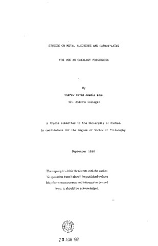 This thesis describes research carried out to investigate the feasibility of preparing high activity heterogeneous catalysts from the thermal decomposition of mixed metal alkoxides, carboxylates and hydroxycarboxylates, focusing in particular on the Cu/ZnO/Al(_2)0(_3) methanol synthesis catalyst. The rationale behind the project is discussed in the opening chapter of the thesis which is followed by literature reviews of heterogeneous catalysis and the chemistry of metal alkoxides, carboxylates and hydroxycarboxylates. Series of co-precipltation/crystallisation reactions of copper and zinc formates, oxalates and adipates were carried out as potential routes to double salts, Some such compounds were formed but in most cases mixtures of the individual salts resulted (xrd).Thermal decompositions of alkoxides and carboxylates of copper and zinc were investigated both as separate compounds and as mixtures. The nature of volatile species evolved (gas-phase ir) and of the solid residues (microanalysis, xrd) was different for the mixed decompositions compared to the individual ones, The conditions employed in decompositions of copper (II) formate with zinc methoxide (e.g. under vacuum or a stream of or N(_2) or N(_2)/H(_2)) affected the physical nature of the copper metal/zinc oxide residues, smallest particles resulting when using a N(_2) stream (transmission electron microscopy). Some of these materials showed activity for methanol synthesis. The reaction of soluble copper alkoxides (e.g. Cu(_I)0Bu) with anhydrous zinc 2-hydroxybenzoate, Zn(OzCCeH*(OH))^, led to the formation of apparently mixed metal compounds, for example CuZn(0(_2)CC(_6)H(_4)0)(_2)Py. The preparation of a new soluble alkoxy derivative of zinc is also reported: Li(_2)ZnCl(_2)(0CH(_2)CH(_2)(X:H(_2)CH(_2)0CH(_3))(_2).A summary of the results of the experimental work is given in relation to the project as a whole.