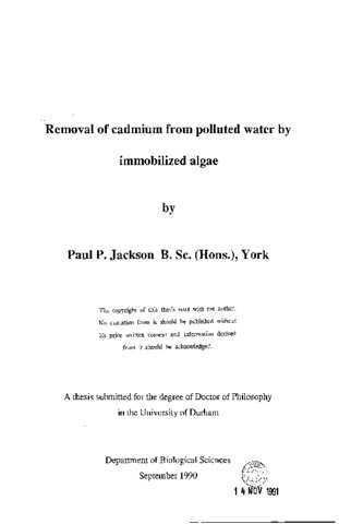 Removal of cadmium from polluted water by immobilized algae