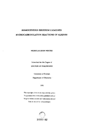 Homogeneous rhodium catalysed hydrocarbonylation reactions of alkenes