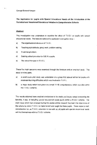 The implication for pupils with special educational needs of the introduction of the technical and vocational educational initiative in comprehensive schools