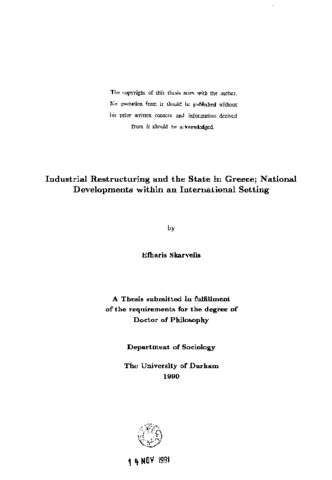 Industrial restructuring and the State in Greece: national developments within an international setting