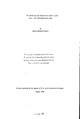 The synthesis and reactivity of some 1,2,3,5 - and 1,3,2,4-dithiadiazolium salts