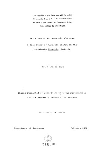 Petty producers, potatoes and land: a case study of agrarian change in the Cochabamba Serranla, Bolivia
