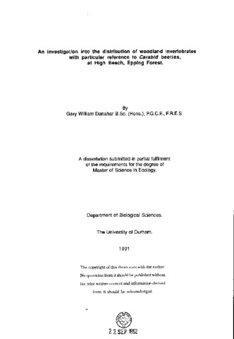An investigation into the distribution of woodland invertebrates with particular reference to carabid beetles, at high beach, Epping Forest