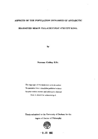 Aspects of the population dynamics of Antarctic blue-eyed shags phalacrocorax atriceps king