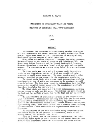 Consistency of personality traits and verbal behaviour in leaderless small group discussion