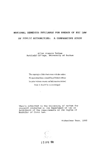 National remedies available for breach of EEC law by public authorities: a comparative study