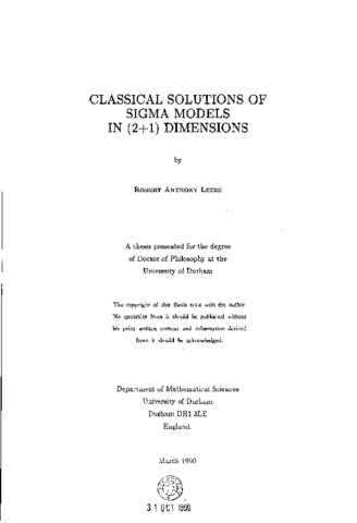 This work is concerned with the large class of nonlinear scalar field theories known as σ-models, and in particular with their classical solutions. It is shown how the σ-models can admit solitons in (2+1) dimensions; and how, in many cases, these solitons can be classified topologically. For the Kähler c-models, the instanton (i.e. static soliton) solutions are derived explicitly via the Bogomolny equations. The main part of the thesis looks at the behaviour of solitons under the influence of small perturbations, and at their (classical) interactions. Attention is confined to the O(3) a-model and its close relatives. A recurring theme is the ability of solitons to change in size as they evolve, a feature which is attributed to the conformal invariance of the theory. There seem to be three possible approaches. In some special cases, the theory is integrable, in the sense that one can write down explicit time-dependent solutions. More often, one must resort to a numerical simulation, or else some sort of approximation. For theories that possess a topological lower bound on the energy, there is a useful approximation in which the kinetic energy is assumed to remain small. All three of these approaches are used at various stages of the thesis. Chapter IIIdeals with the properties of wave-like solitons in an integrable theory, and reveals some hitherto unseen behaviour. Chapters IV and V develop a numerical simulation based on topological arguments, which is then used in a study of soliton stability in the pure O(3) model. The conclusion is that the solitons are unstable to small perturbations, in the sense that their size is subject to large changes, even though their energy remains roughly constant. Chapter VI uses the slow-motion approximation to investigate soliton interactions in the O(3) model, and uncovers a plethora of possibilities. Finally, some suggestions are made regarding possible directions for future research. In particular, attention is focussed on ways of modifying the O(3) model in an attemptto stabilize its solitons against changes in size
