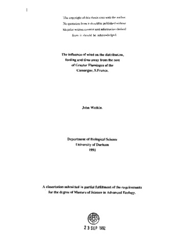 The influence of wind on the distribution, feeding and time away from the nest of greater flamingos of the Camargue, S. France.