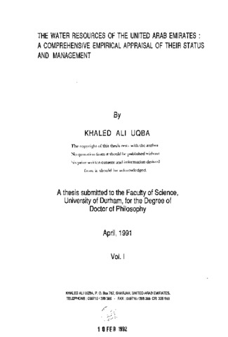 The water resources of the united Arab emirates: a comprehensive empirical appraisal of their status and management