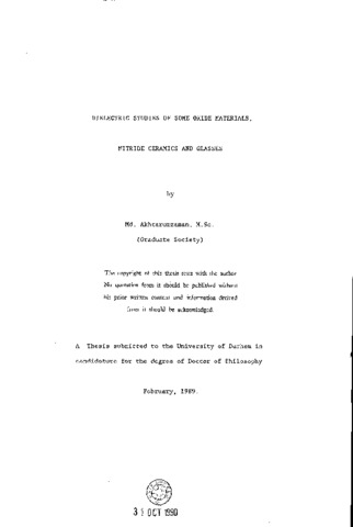 Dielectric studies of some oxide materials, nitride ceramics and glasses