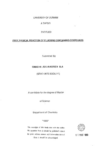 Free radical reaction of fluorine containing compounds.