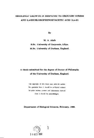 Seedlings' growth in response to drought stress and 2,4-dichlorophenoxyacetic acid (2,4-D)