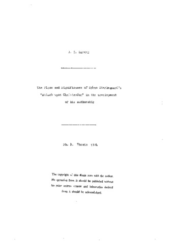 The place and significance of Soren Kierkegaard's "attack, upon Christendom" in the development of his authorship