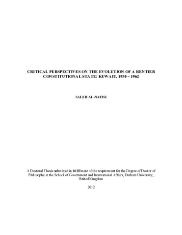 Critical Perspectives on the Evolution of a Rentier Constitutional State: Kuwait, 1950-1962