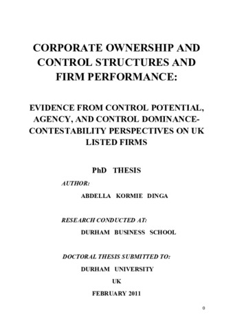 CORPORATE OWNERSHIP AND CONTROL STRUCTURES AND FIRM PERFORMANCE: EVIDENCE FROM CONTROL POTENTIAL, AGENCY, AND CONTROL DOMINANCE-CONTESTABILITY PERSPECTIVES ON UK LISTED FIRMS BY: ABDELLA KORMIE DINGA MATERIAL ABSTRACT The research study comprises of two preceding Chapters, three main empirical Parts, and CONCLUSION. The first Chapter, Introduction, presents the overall research objectives and questions of the study based on the existing agency perspectives regarding the issues of control and governance conflicts in modern corporations. The second Chapter, Review of Theoretical Frameworks, presents a brief account of similarities and differences between the existing theoretical frameworks relevant to the control of corporations. The review identified that the agency theory provides powerful testable models and tools that can be used in the investigation of the agency conflicts and the possible solutions that mitigate the governance problems. The three empirical Chapters follow mainly the deductive research approach of making statistical inferences using a sample of major UK listed firms in the FTSE All Share Index for the period 2003-2007. Chapter Three deals with the analysis of the state and trends or evolution of corporate ownership and control structure and some board structures of the UK listed firms. The Chapter has been instrumental in preparing the raw materials of ownership and control structure variables that are used in the succeeding two chapters. Chapter Four deals with the analysis of the relationship between ownership structure and performance using aggregate stake of all identifiable blockholders’ categories and all external blockholders in the agency perspective. Chapter Five presents analysis of the relationship among ownership, control structures and firm performance using the structural equations framework in the control dominance-contestability perspective. Finally, the Thesis closes with a Conclusion. In summary, the Theses of this empirical research study suggest the followings. Firstly, there is the prevalence of multiple significant blockholders in the modern listed firms even when share ownership is dispersed. Secondly, in the presence of multiple significant blockholders in the firm, there is a likelihood that the second-type agency conflicts between large shareholders and minority shareholders exists, and that might be the dominant force that determines the possible control configuration even in listed firms with dispersed ownership. Thirdly and finally, the traditional one-equation modelling and their estimations in the methodology of looking into the relationship of separate share ownership categories or accounting for few of the categories might not precisely identify (1) the blockholders’ (control forces’) incentives and ability of exerting control over the modern corporations, (2) the problem of endogeneity that might arise in the relationships, and (3) the way significant multiple blockholders interact and share control of the firms. Hence, the use of structural equations modelling and control dominance-contestability perspectives, in which the roles of blockholders structure control forces, internal and external governance mechanisms, and the problems of endogeneity are accounted for might be appropriate to reveal the control configuration of modern listed firms with multiple large blockholders.