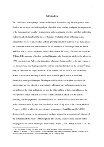 This thesis offers a fresh angle on the history of neuroscience by highlighting that the human-animal boundary has since Antiquity been a vital component of all philosophical, anatomical and experimental discourses on the nervous system and its associated properties. I argue that in this regard, the history of neuroscience is not as straightforward and progressive as traditional accounts convey; rather, the constant negotiation of what makes us differ from animals and the need to assert human bodily and mental superiority not only influenced philosophical debates, but at times even distorted the actual observation and description of corporeal structures. By focussing on key historical figures whose research helped shape our understanding of the nervous system, I want to show how crucial the model function of animals has been in establishing the importance of the brain and nerves as the executive members of the human mind and sensation. The aspect of the human-animal boundary is thereby the one thread that connects ancient philosophical and anatomical investigations with those of the early modern period. My overall aim is accordingly to assert that the negotiation of the difference vs. the similitude between humans and animals is a neglected but fundamental aspect that needs to be taken into account for a more comprehensive history of neuroscience.