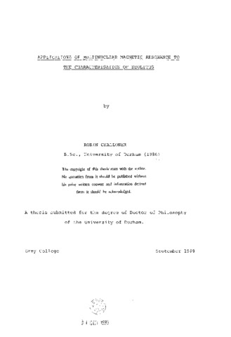 The following research is primarily concerned with the characterisation of the novel, unidimensional, zeolite theta-1 by solid-state multinuclear magnetic resonance spectroscopy. Some study has also been made of the zeolites ZSM-5 and NaY. The high-silica form of as-synthesised theta-1 is studied by high-resolution (^13)C and (^29)Si MASNMR. The (^13)C spectra are interpreted as showing the presence of both neutral and protonated diethylamine template molecules. These observations are discussed in terms of the possible presence of acid sites and their spatial distribution. The (^29)Si NMR results are consistent with the template molecules occupying the 10-T channels only. The (^29)Si spin-lattice relaxation mechanism is investigated under a variety of conditions. Changes in the (^29)Si NMR spectra on calcinations indicate the possibility of a minor framework rearrangement.Theta-1 synthesised using a diethanolamine template is also investigated. The template distribution is examined, and evidence for structural modification by the presence of the template is presented. The nature of the non-framework aluminium species produced on hydrothermal dealumination and the broad linewidths observed for such species in (^27) A1 NMR are also investigated. The signal response to the application of a single pulse of finite duration to a system of I=(^3)/2 nuclei is used to illustrate the differences between selective and non-selective excitation of the central transition, and the requirements for quantitivity. A series of model compounds is investigated by quadrupole nutation NMR, and more complex zeolite systems containing quadrupolar nuclei are investigated by a variety of techniques.