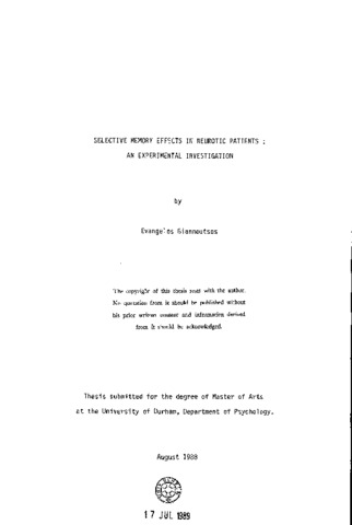 Selective memory effects in neurotic patients: an experimental investigation