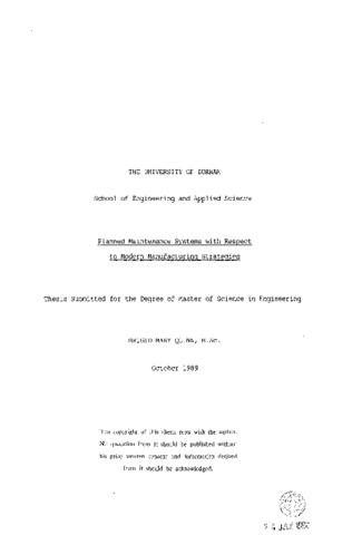 Planned maintenance systems with respect to modern manufacturing strategies