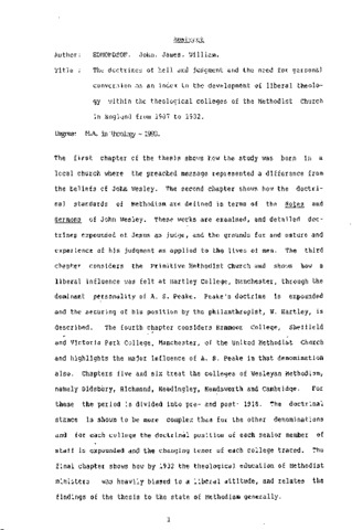 The doctrines of hell and judgment and the need for personal conversion as an index to the development of liberal theology within the theological colleges of the Methodist church in England from 1907 to 1932
