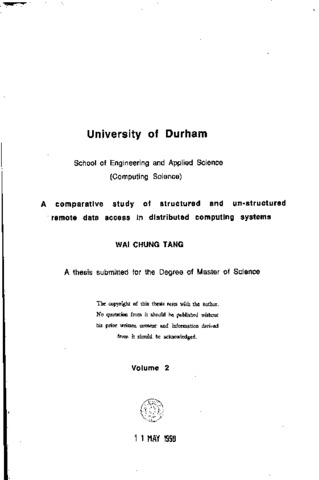 Recently, the use of distributed computing systems has been growing rapidly due to the result of cheap and advanced microelectronic technology. In addition to the decrease in hardware costs, the tremendous development in machine to machine communication interfaces, especially in local area networking, also favours the use of distributed systems. Distributed systems often require remote access to data stored at different sites. Generally, two models of access to remote data storage exist: the un structured and structured models. In the former, data is simply stored as row of bytes, whereas in the latter, data is stored along with the associated access codes. The objective of this thesis is to compare these two models and hence determines the tradeoffs of each model. First of all, an extended review of the field of distributed data access is provided which addressing key issues such as the basic design principles of distributed computing systems, the notions of abstract data types, data inheritance, data type system and data persistence. Secondly, a distributed system is implemented using the persistent programming language PS-algol and the high level language C in conjunction with the remote procedure call facilities available in Unix(^1) 4.2 BSD operating system. This distributed system makes extensive use of Unix's software tools and hence it is called DCSUNIX for Distributed Computing System on UNIX. Thirdly, two specific applications which employ the implemented system will be given so that a comparison can be made between the two remote data access models mentioned above. Finally, the implemented system is compared with the criteria established earlier in the thesis. keywords: abstract data types, class, database management, data persistence, information hiding, inheritance, object oriented programming, programming languages, remote procedure calls, transparency, and type checking.