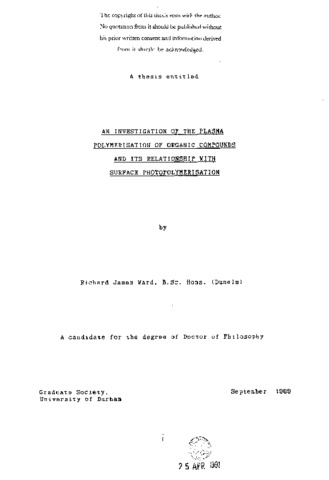 An investigation of the plasma polymerisation of organic compounds and its relationship with surface photopolyherisation