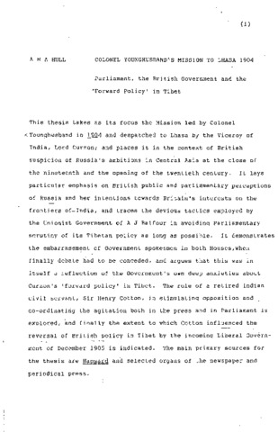 Colonel Younghusband's mission to Lhasa 1904: parliament, the British government and the 'forward policy' in Tibet