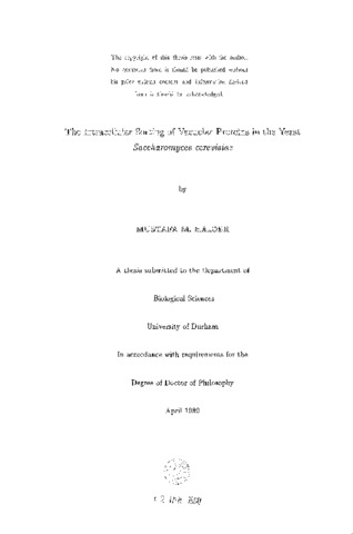 The mechanism of protein sorting to the vacuole in yeast was studied both in vitro and in vivo. A series of experiments were performed to reconstitute transport of carboxypeptidase Y (CPY) from Golgi vesicles to vacuoles. In order to investigate this process, microsomes were purified from sec, pep4-3 mutant strains that accumulate inactive proCPY in the Golgi when incubated at the nonpermissive temperature. These were mixed with purified vacuoles isolated from a mutant lacking CPY activity, but containing active proteinases A and B. Transported proCPY is maturated by these proteinases to active form. Experiments indicate that maturation of CPY is due to the correct transport of proCPY from microsomes to vacuoles because:- Firstly, the reaction is temperature sensitive, requires ATP and is stimulated by the addition of soluble factors (S100). Secondly, the addition of proteinase A and B inhibitors to the reaction mixtures has a negligible effect on the maturation process. Thirdly, disrupting the membranes by the addition of Triton X-100 before addition of the proteinase inhibitors, inhibited the maturation of proCPY. Fourthly, the majority of CPY activity was observed in the sedimented fraction of the reaction mixtures rather than supernatant fractions. Lastly, analysis with western blot shows a clear band of mature CPY only in the sedimented fraction of the reaction mixtures with ATP. This in vitro system will be invaluable in investigating the molecular events of vacuolar biogenesis. For in vivo sorting of proteins to the vacuole, a series of experiments were performed that involved the genetic fusion of the CPY promoter and prepro-sequence of CPY to the bacterial Gus (β-glucuronidase) reporter gene. The Gus gene was expressed in yeast with high efficiency and the results of sub-cellular fractionation indicated that the Gus product was distributed in all cell components. Using a centromeric vector gave similar results but with a lower efficiency of Gus expression. Removal of 90bp from Gus, including Gus initiation codon does not completely inhibit Gus expression either in bacteria or in yeast. Fusion of the shortened Gus with the CPY prepro-fragment and expression in yeast led to the correct sorting of the CPY-Gus hybrid protein to the vacuole. This CPY-Gus fusion is potentially useful in the genetic analysis of mutations defective in vacuolar protein sorting.