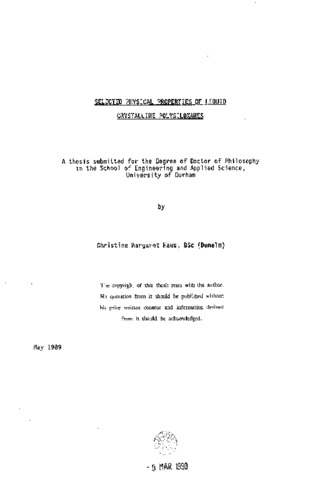 The static and dynamic electrical behaviour, the electrical conductivity, the macroscopic viscosity and the optical transmission characteristics of side chain polysiloxane liquid crystal polymers (LCPs) have been studied. Particular emphasis has been placed on the study of the molecular dynamics using dielectric relaxation spectroscopy and the low field (AC) and high field (DC) conductivity, with the intention of relating structural variations to the behaviour of these materials, and of identifying the most appropriate LCPs for use in practical optical storage devices. The effect on the molecular dynamics of the polymer backbone and the core, spacer and end groups of the mesogenic units was investigated. The LCP responses were shown to be broadly similar to those of low molar mass liquid crystals, though with longer relaxation times. The dynamic responses of structurally different LCPs were shown to be related when these were observed at a temperature referenced to the glass transition temperature. Values of the static permittivity of several LCPs have also been measured and tabulated. Low field electrical conductivity measurements were used to show that the magnitude of the conductivity was comparable to that of commercial liquid crystals. A method was identified whereby the conductivity of different LCPs could be compared. The texture of the measuring electrode surface was found to play an important role in determining the impedance of electrical double layers formed near the surface of the sample, with smooth polymer based surfactants reducing the formation of space charge. High field DC conductivity measurements showed that Schottky-type charge emission occurred at the electrodes at elevated temperatures, except when the smooth polymer based surfactants were present. This was probably a result of the reduction in the local field near the electrode due to a better physical match at the LCP/surfactant interface. The bulk viscosity of mixtures of an LCP and commercial liquid crystal were also measured and the results extrapolated to the viscosity of the LCP. The relationship between electrical conductivity and bulk viscosity was examined. The optical absorption spectra of blue pleochroic dyes have been measured to identify appropriate dyes for use with LCPs in laser written optical memories. The stability of the alignment of selected LCPs with time and temperature was also observed optically.