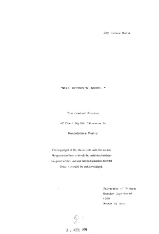 Word return to music...: The gradual erosion of overt mythic reference in Mandelstam’s poetry.