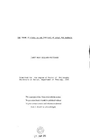 Harnack Is best known as a church historian of the first rank, but a case can also be made for his significance as a constructive theologian. This thesis sets out to examine his theology using an interpretive framework not employed before, namely, the theme of power which runs throughout his work. Use is made of the sociological typology of power developed by Dennis Wrong on the basis of Weber, of Michael Mann's work on the origins of social power, and of Peter Berger's classification of various theological approaches to secularisation and religious pluralism. The investigation broadens the base of Harnack research by making fuller use than has generally the case of publications other than Das Wesen and Dogmengeschichte. and pays attention to Harnack's devotional as well as his scholarly writing. The theory of power which emerges is strongly dualistic, distinguishing interior, ideological power from external, social power. Divine power empowers individuals from within, via their acceptance of the charismatic and competent authority of Jesus as legitimate authority, and the concomitant attribution of benign, nutrient power to the character of God. This acceptance produces markedly beneficial effects upon the individual’s emotional and moral state, which gives rise to constructive activity in the external world. Inherent in this theory is a high estimate of the empowering possibilities of ideas and personalities. Harnack argues that the early church underwent a regrettable process Ctranspotentiation'), involving the growth of external, coercive authority and a diminution in the availability of interior, divine/spiritual power. Harnack's work contains serious tensions related to its untenable dualism and its ambivalence about the possibility of legitimate external authority in the church. But his explanation of divine/spiritual empowering provided a plausible, attractive theodicy and apologetic in its time. With modifications it could do so again, and is of especial value in developing an existential theology of the inner life.