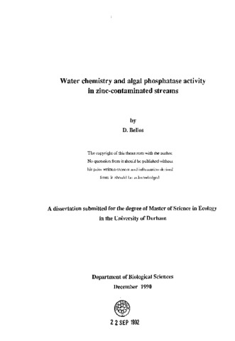 Water chemistry and algal phosphatase activity in zinc-contaminated streams