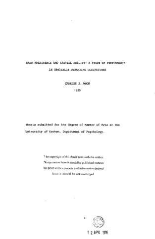 Hand preference and spatial ability: a study of performance in spatially demanding occupations