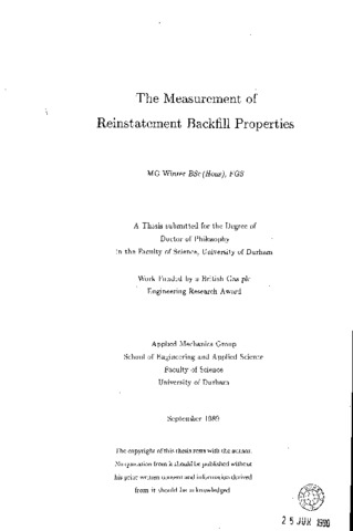The measurement of reinstatement backfill properties