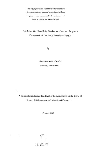 Synthesis and reactivity studies on oxo and sulphide compounds of the early transition metals