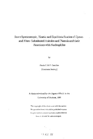 Some spectroscopic, kinetic and equilibria studies of Cyano- and nitro- substituted anisoles and phenols and their reactions with nucleophiles