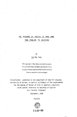 The issue concerning English education in Hong Kong has been a matter of much debate. This dissertation comprises two parts. Part I (Chapters 1-3) is a description of the problems and Part II (Chapters 4 and 5) a search for solutions. Chapter 1 gives a factual picture of the language problems and the responses of both the government and the public to them. Chapter 2 is a study of the linguistic situation in Hong Kong, having a discussion particularly about the nature of bilingual ism. Chapter 3 analyses the language learning difficulties and the actual needs of the learners. Chapter 4 is an attempt to solve the problem by locating the proper position of English learning in the language education of Hong Kong. Chapter 5 suggests a possible solution to maintain, and hopefully to improve the teaching quality, by adapting the communicative approach to the Hong Kong situation.