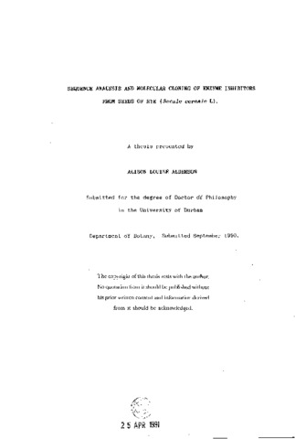 Sequence analysis and molecular cloning of enzyme inhibitors from seeds of rye {secale cereale l)