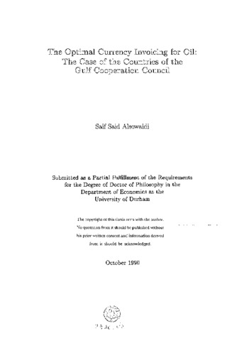 Stability in exchange rates has been the objective of several international monetary agreements since the early twentieth century. Thus the par value of currencies was determined in terms of a specified amount of gold, under the gold standard, whilst, the Bretton Woods agreement and the Smithsonian agreement defined the value of each currency in terms of the dollar, where the dollar was defined in terms of gold. Nevertheless, all these various systems have failed to eliminate the arguments between the proponents and the opponents of flexible and fixed exchange rate regimes. Although the major industrial countries have adopted a relatively flexible exchange rate regime, most developing countries have held their currencies pegged to the currency of a major industrial country, or a basket of currencies, with the aim of meeting a particular macroeconomic criterion. The choice of pegs tends to be influenced by trade shares, however, adopted according to the objective function the domestic authorities aim to fulfil. The literature has defined several macroeconomic objectives of a peg but found no particular peg to be universally adopted by all developing countries. An examination of the contract invoicing literature shows that, international trade involves incurring of risk by firms, exporters and importers. This risk is partly determined by the choice of currency denomination of contracts, which firms are expected to seek means of minimizing. With respect to currencies used to invoice contracts, there is overwhelming evidence to suggest that it is the currency of the exporter which tends to be used to denominate trade contracts. However, on an ad hoc basis, certain commodities and raw materials were found to be invoiced in vehicle currencies, such as the dollar. Moreover, the choice of currency invoicing is found to be influenced by many factors. In particular, inflation differentials were essential. Low inflation currencies are generally preferred by trading partners. A major issue of concern discussed in the literature is the potential effect of exchange rate fluctuations on the volume of international trade. The evidence on this has gone both ways. Some have argued that these fluctuations are of less concern because firms can use the forward market as means of reducing their impact. The analytical framework presented in the present thesis deals with an important issue for the member states of the Gulf Cooperation Council (GCC). These economies depend on oil revenues as the main source of income. Consequently, both government and private spending rely heavily on the oil sector. However, analyzing this invoicing policy without considering the behavior of the exchange rates between the currencies of these countries and those of their major trading partners, would be misleading. Thus, the present model adopts an integrative approach aimed at choosing a currency or a basket of currencies for invoicing oil, and determining how the choices of the same arrangements or alternative arrangements adopted for pegging the domestic currencies can affect the welfare function adopted for the choice of currency(s) for invoicing oil. This welfare function, as it is argued in the thesis, is based on stabilizing the real, rather than the nominal, value of oil revenues. The historical perspective has demonstrated close correlations between inflation rates, money growth rates and oil revenues in the GCC economies. Moreover, the dependence of these economies on oil revenues as the major source of income, has been argued to be the decisive factor that has resulted in their currencies being pegged to the dollar. The results from the estimation, however, do not support a peg to the dollar, nor invoicing oil in dollars. Nonetheless, other single currencies have failed to fulfill the optimality condition, thus favoring pegging to a trade-weighted basket of currencies, and an invoicing scheme for oil which is based on a basket of currencies. Trade shares prove to be important, since deviations from purchasing power parity are passed via them. Despite the different levels of stability resulting from alternative combinations of peg and invoice choices, statistical evidence concludes that there are no significant differences amongst the resulting variances of the real value of oil revenues in terms of the domestic currencies of the GCC member states. Accordingly, it may be argued that if the sole objective of the authorities in these countries is to stabilize the real value of oil revenues, any choice of the alternatives considered in the present thesis would yield the same result in terms of stability.
