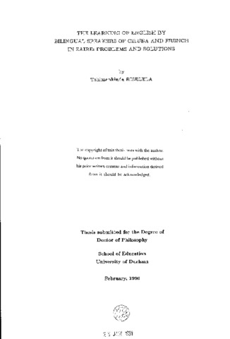 The purpose of this thesis is to examine the teaching of English as a foreign language in Zaire in general and Eastern Kasai in particular. For it is evident from personal experience and evidence from examination results that this learning is in general not satisfactory, and particularly poor as far as learners' mastery of oral fluency is concerned. The aim of the thesis is therefore to analyze the learning situation in order to clarify the factors which might be causing this unsatisfactory situation. We take two approaches to this analysis: a theoretical review of the situation and an empirical study of teaching and learning. The thesis thus falls into four parts. In Part One, we describe the learners’ historical and sociolinguistic background and the Zairean educational situation in general and the problems of teaching English in particular. In Part Two, we review the situation in Zaire -and in Eastern Kasai in particular- by an analysis of the literature on language learning and the insights it can give us into the Zairean problem. This review deals first with issues in foreign language teaching. It also focusses however on literature on bilingualism since Zairean learners are always bilingual in, at least, one local language and the French they learn on entry to the education system. Intuitively, we might assume that bilingual learners will be at an advantage in learning a foreign language, and Zairean learners should therefore be in a good position to learn English. Our review of the relevant literature examines the objective evidence for this intuitive assumption and suggests that, other things being equal, bilingual individuals should be good learners of foreign languages. We conclude therefore that other factors in the situation may be responsible for the unsatisfactory standards. Part Three is an analysis of some of those factors, based on an empirical investigation. It is at this point that the thesis focusses more precisely on Eastern Kasai where fieldwork was carried out. Pupils and students, teachers, and inspectors and administrators were given questionnaires and interviews, and lessons were observed in four secondary schools. Many factors were found to be causing problems in EFL learning. Part Four deals with the most important of these factors and their implications, our recommendations for future practice and further research, and the conclusion., The following factors were identified as having a detrimental effect on this learning: learners' lack of motivation to go on/ perseverance, which is caused by the overemphasis teaching methods put on accuracy. This in turn means that every thing done or said in lessons is teacher-centred and teacher-dominated, and this contributes to a reduction in the already scarce opportunities and frequencies of use of English by the learners. We therefore recommend that, to increase learners' motivation to learn (to speak) English, teaching methods and teachers should allow them much more freedom of speech, thus stressing (oral) fluency. This will result in these learners opening up, and in methods becoming more learner-oriented, with the ultimate aim of having them learner-centred. In our conclusion, we give a summary of the thesis, namely its purpose, the way we followed to reach it, the results we got, and our recommendations for future practice and research.
